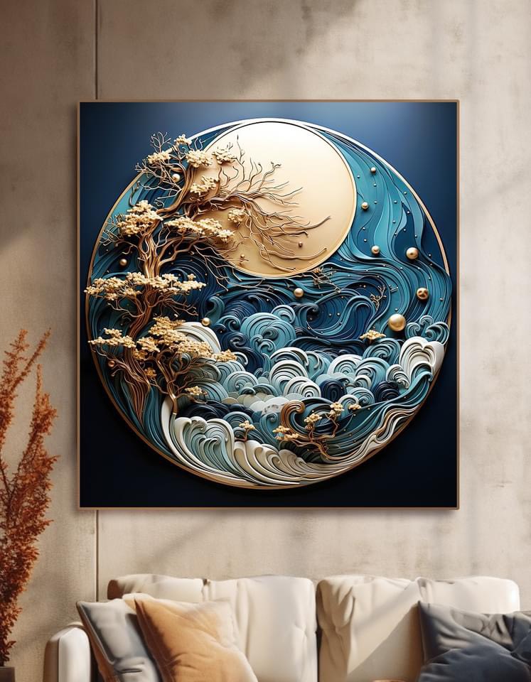 Tranh Decor Thủy Mặc Trăng Tròn